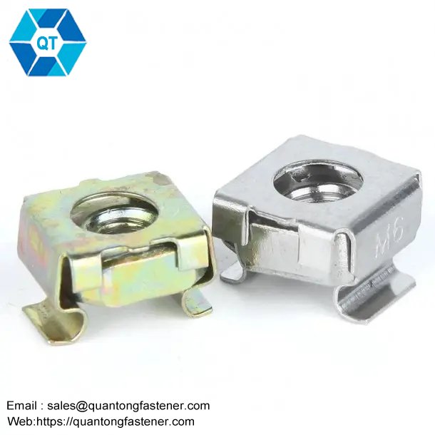 The cage nut has a high-strength thread tightening effect. It is placed into a pre-punched square hole with a special tool, and the tool is pulled back to fix it on a metal or other plate. The installation is quick and convenient, and it can be removed and relocated.It can also be fixed at an angle. The cage nut is also called a square hole cage nut, and some people call it a floating nut.It’s called differently, but it’s a special nut.Its shape is a square nut in a square box. The square nut is through-hole and threaded.
